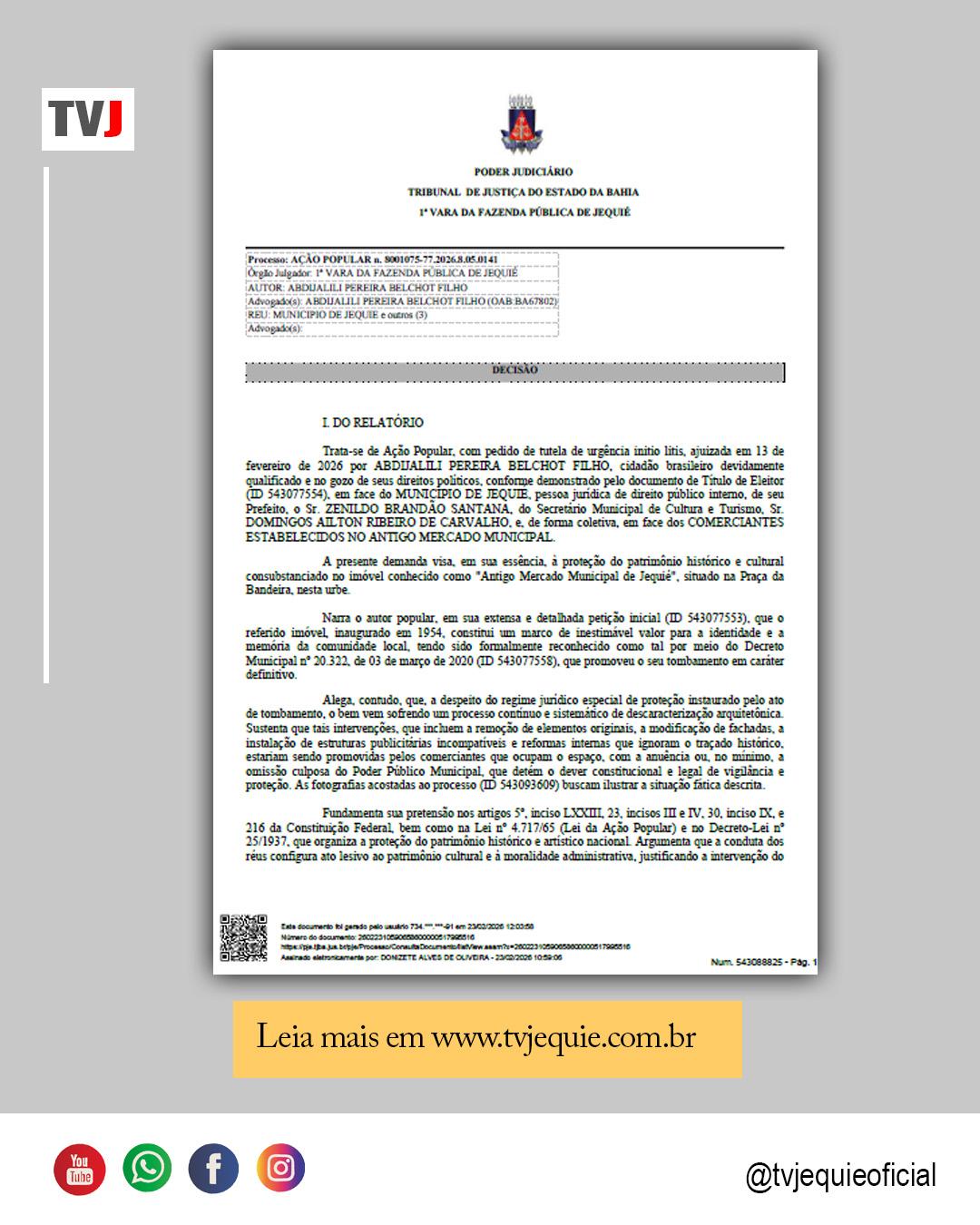 O advogado jequieense, Dr. Abdijalili Belchote, ingressou na 1ª Vara Pública da Fazenda de Jequié com uma ação contra o município de Jequié, em razão da falta de fiscalização da prefeitura de Jequié, que tem permitido que ocorra descaracterização arquitetônica do Mercado Municipal por parte de comerciantes que possuem a autorização de uso, concedida através do Termo de Cessão de Uso, expedido pela prefeitura.