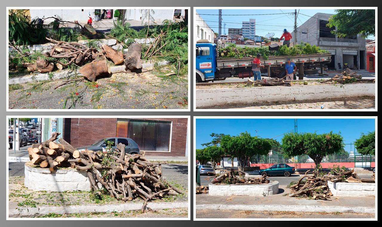Uma internauta, indignada, que passou por este local hoje pela manhã, enviou à reportagem da TV Jequié, uma foto de árvores que foram cortadas em frente a sede do Tribunal Regional Eleitoral – TRE, com a mesma situação da Praça Luiz Gonzaga, sem o devido recolhimento dos restos de poda.