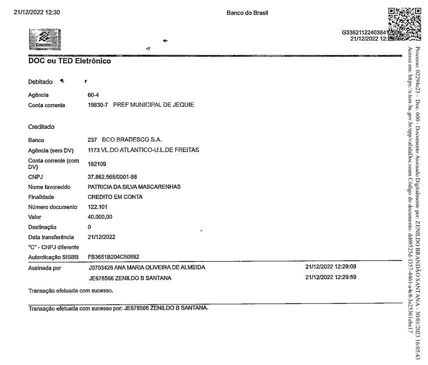 Em 21 de dezembro de 2022, a prefeitura de Jequié, através do Processo de Pagamento nº 006539, efetuou o pagamento antecipado no valor de R$ 40.000,00 (quarenta mil reais) referente a 50% da contratação do Show Artístico com o cantor baiano Jau, para apresentação no evento Natal 2022, por meio da empresa SANDALIA DE COURO PRODUÇÕES. O valor total da apresentação foi de R$ 80 mil reais, tendo como fonte de recurso a Secretaria Municipal de Cultura e Turismo, por meio dos recursos de Promoção e Patrocínio de Festa Populares.