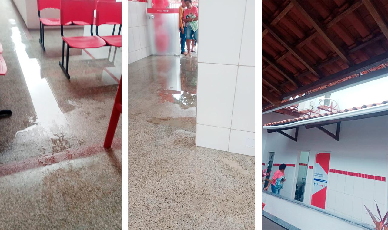 Uma chuva de apenas 10 milímetros foi suficiente para alagar alguns pontos da parte interna da Unidade de Saúde Júlia Magalhães e interromper o atendimento aos usuários do SUS.