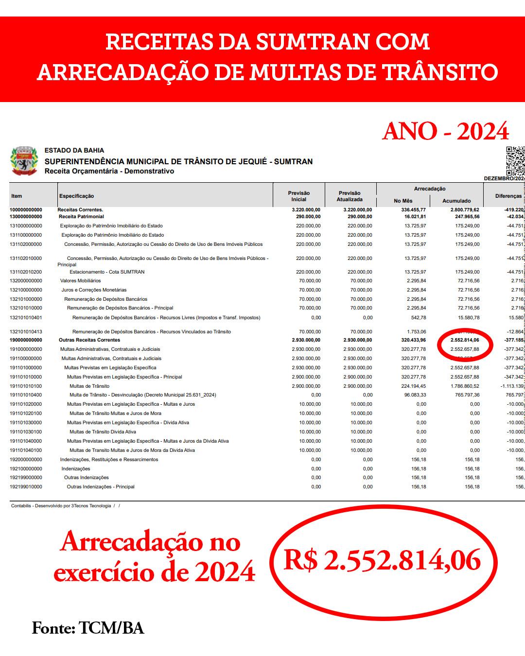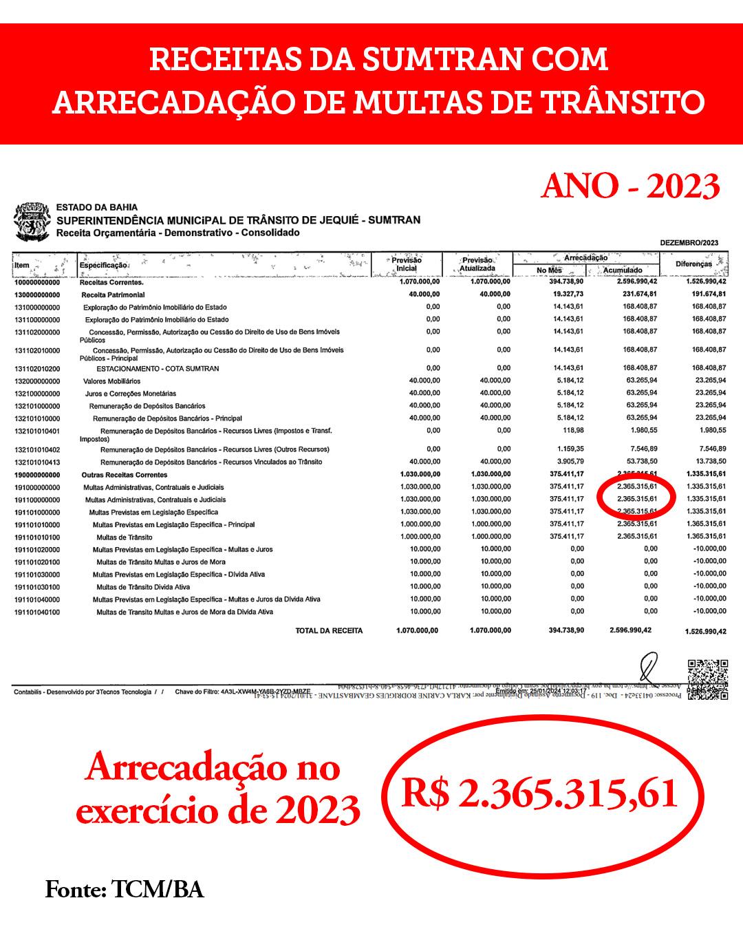 Desde o início da gestão do prefeito Zé Cocá (PP), a autarquia responsável pelo controle do trânsito de Jequié, a Sumtran, vem se destacando pelos crescentes valores registrados na arrecadação advindos das aplicações de multas de trânsito.