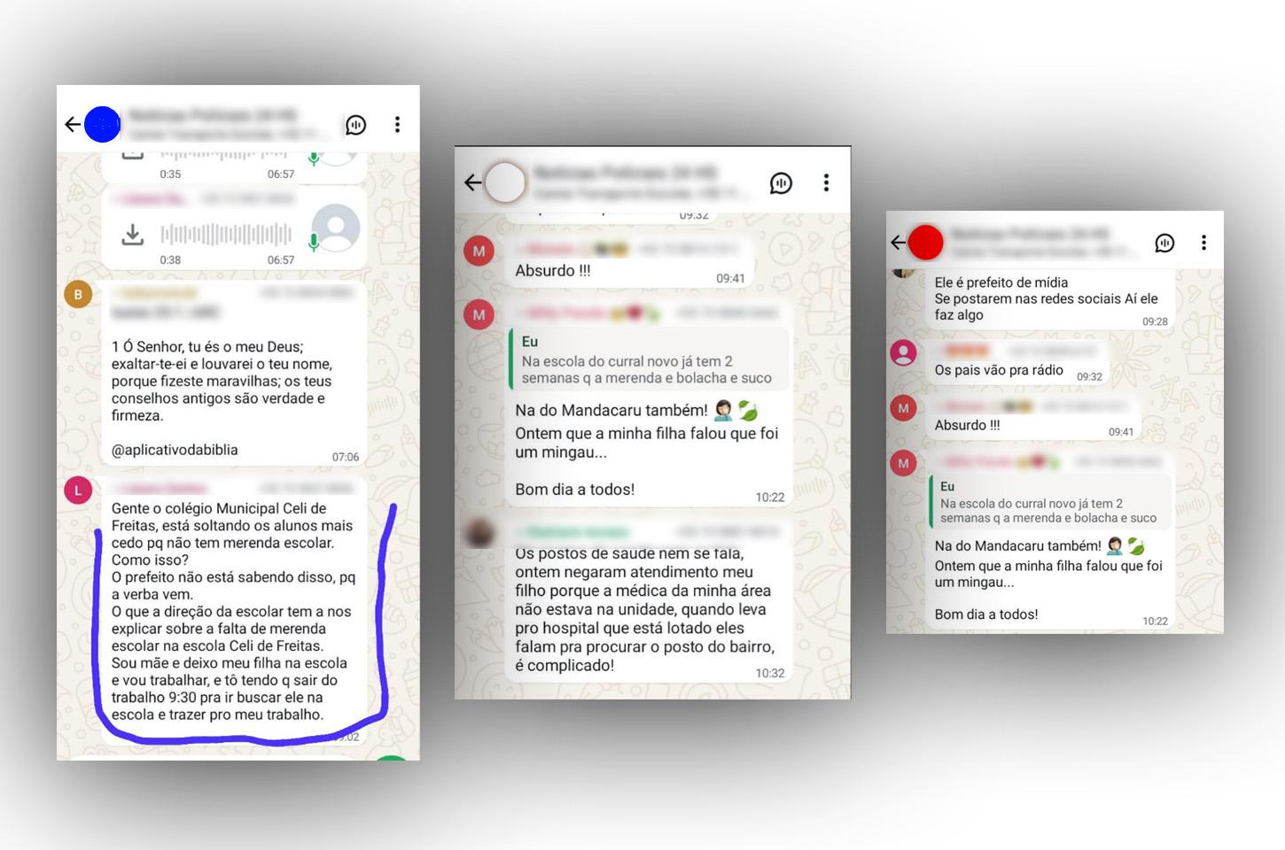 Em um dos comentários viralizados nas redes sociais, a mãe de um aluno da rede municipal disse que deixa sua filha na escola municipal Celi de Freitas às 7h00 e está sendo obrigada a sair do trabalho para ir buscá-la às 9h30 em razão da falta de merenda escolar.