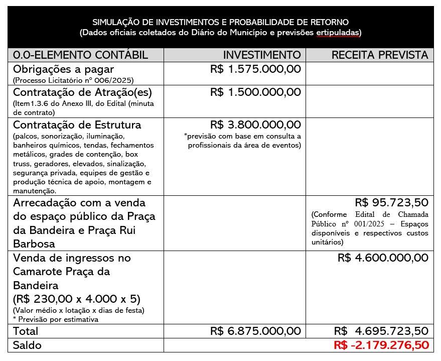 Diante dos fatos acima expostos, vamos às contas e as conclusões ficam a cargo de cada leitor, conforme sua compreensão: