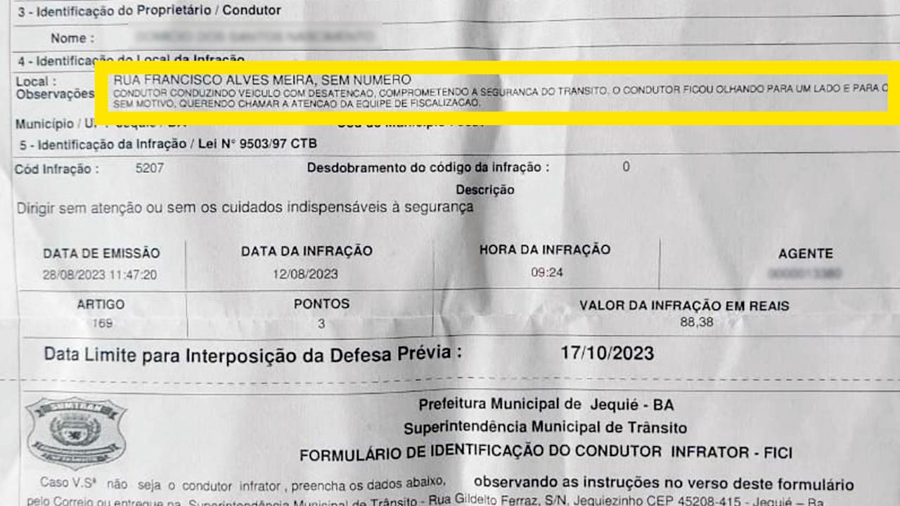 Zé Cocá considerou uma aberração a Autuação de Notificação feita pela Sumtran, com a discrição da penalidade, indicando que o condutor foi notificado porque estava olhando para um lado e para o outro e ainda tentou chamar a atenção da equipe de agentes de trânsito.